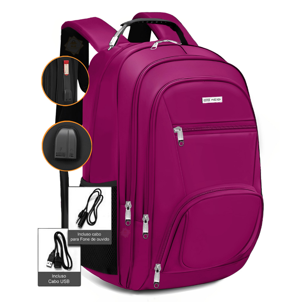 Mochila Antifurto Cadeado Premium Unissex com Compartimento Notebook e Entrada USB Feminino/Masculino Super Durável
