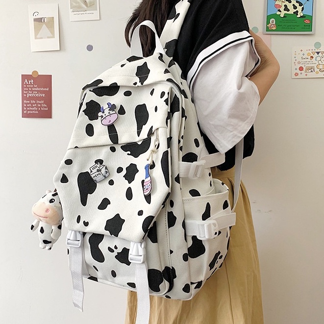 Mochila em Oferta com Cupom de Desconto e Frete Grátis* é na Shopee Brasil! Acesse agora a melhor opção de compra para Mochila Escolar Com Padrão De Vaca Fofa Bolsa De Lona Estilo Coreano em nossa loja parceira.