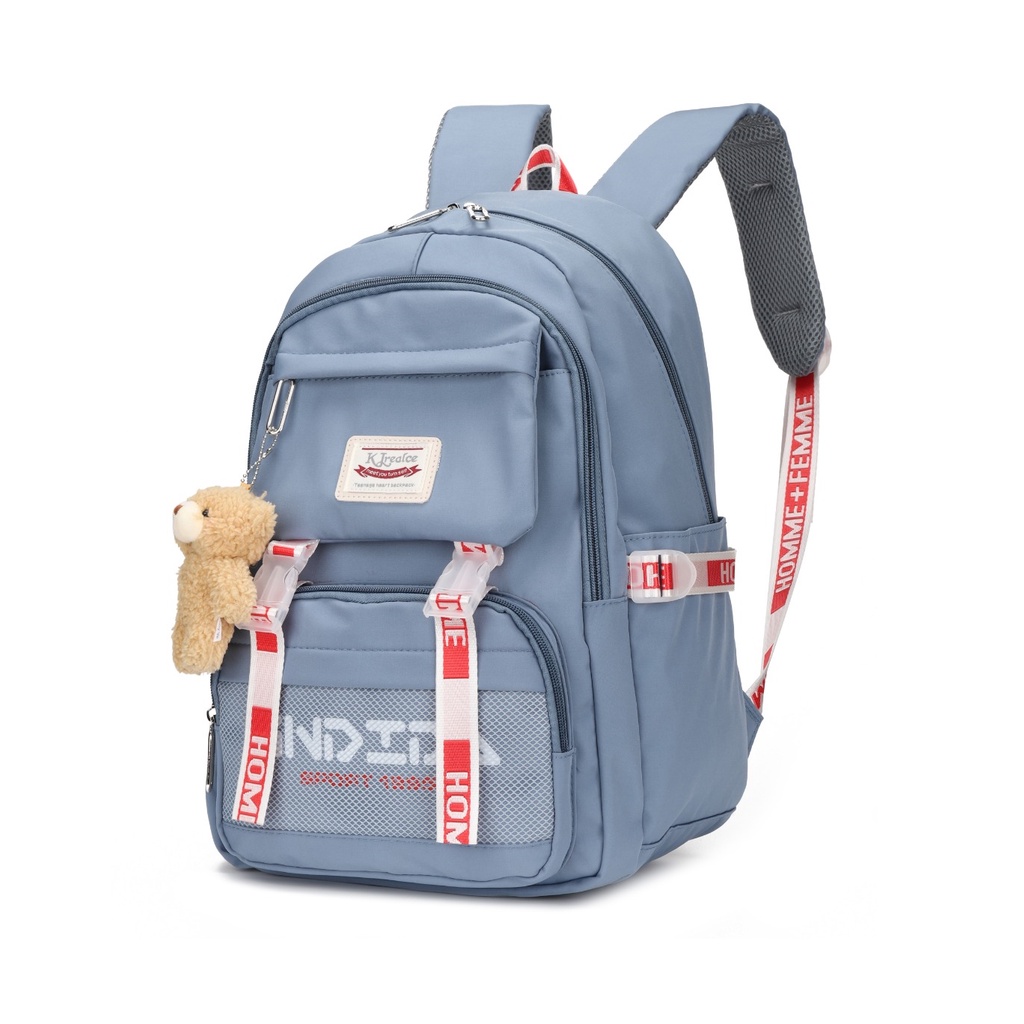 Mochila Escolar Grande Versão Coreana/Japonesa Antifurto Impermeável + Ursinho (6263)